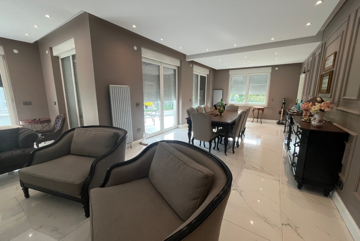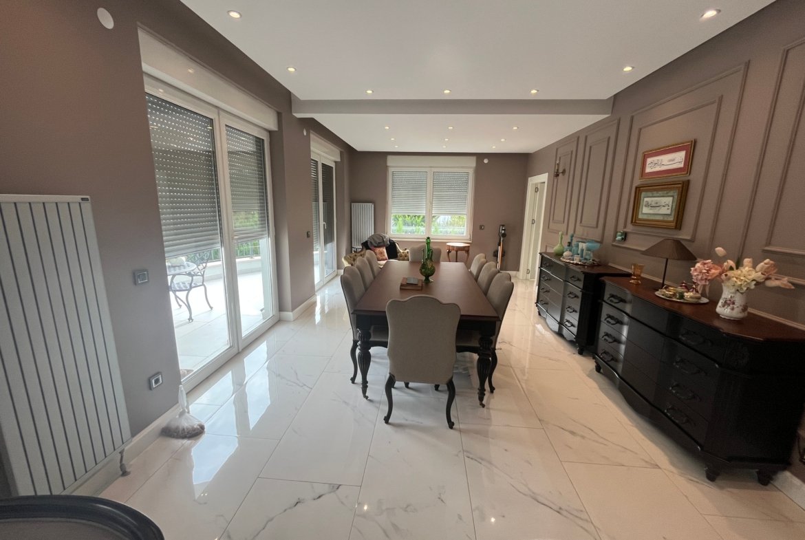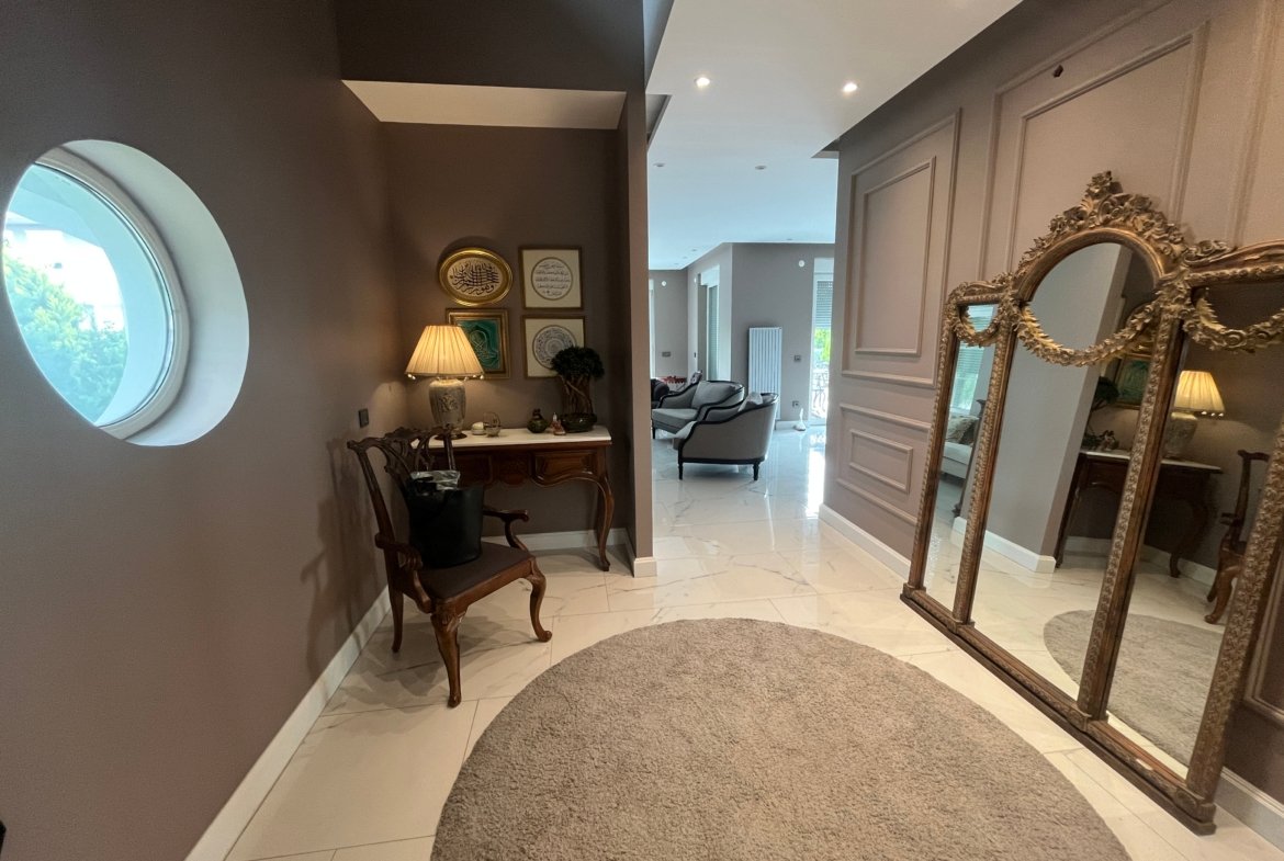 Zengin dış mimarisi olan, görkemli, doğal peyzajlı, üç katlı lüks rezidans tipi villadır.