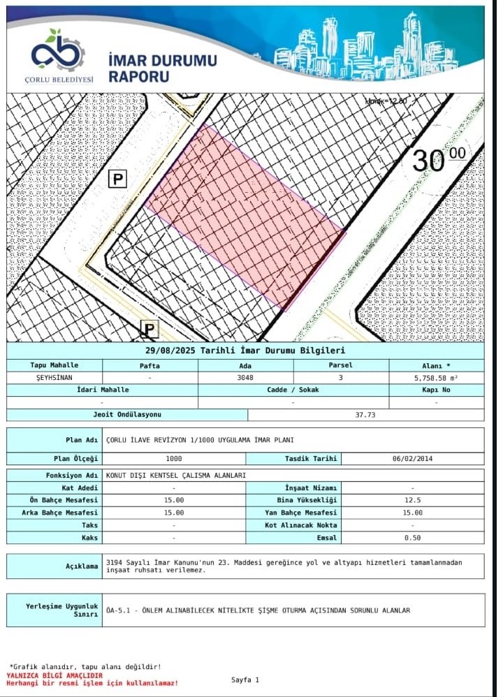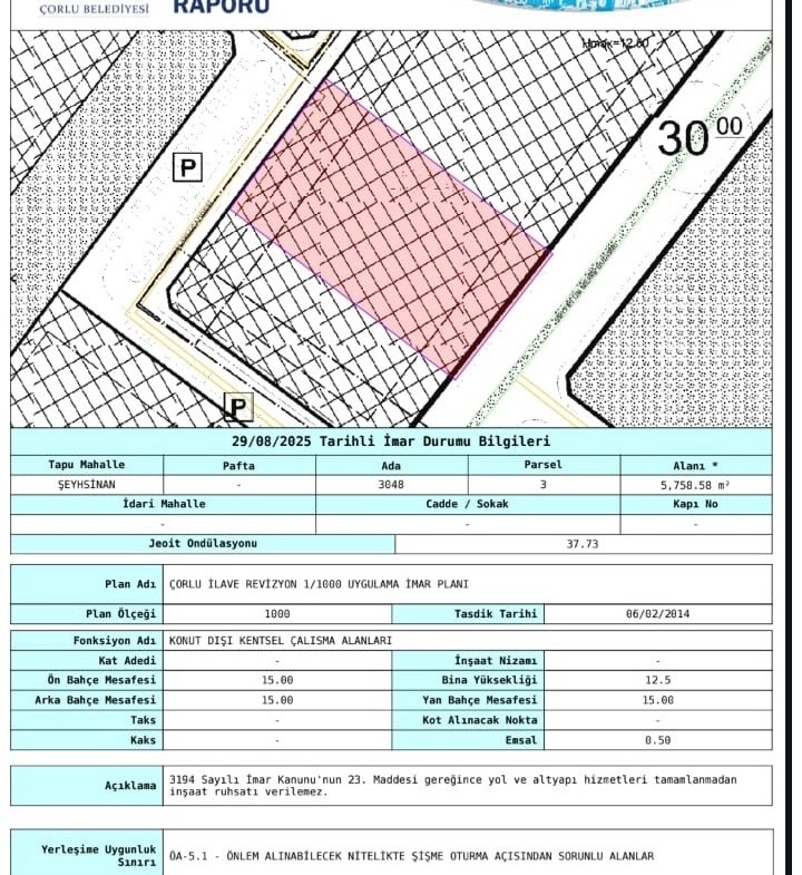 Tekirdağ, Çorlu Satılık Sanayi Arsası
